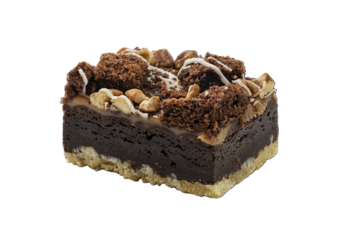 Pakastettu suorakaiteen muotoinen suklaabrownie (10 %) muruseoksella, päällä karamellikerros ja kakkupaloja, koristeltu pekaanipähkinöillä ja valkoisilla raidoilla, tarjoiluvalmis. Kypsä pakaste, sulata ja tarjoile. Nousiko vesi kielelle? Kysy tuotteista lähikauppiaaltasi tai kahvilastasi ja kerro, että Reuter & Stoltilta näitä saa tilattua.